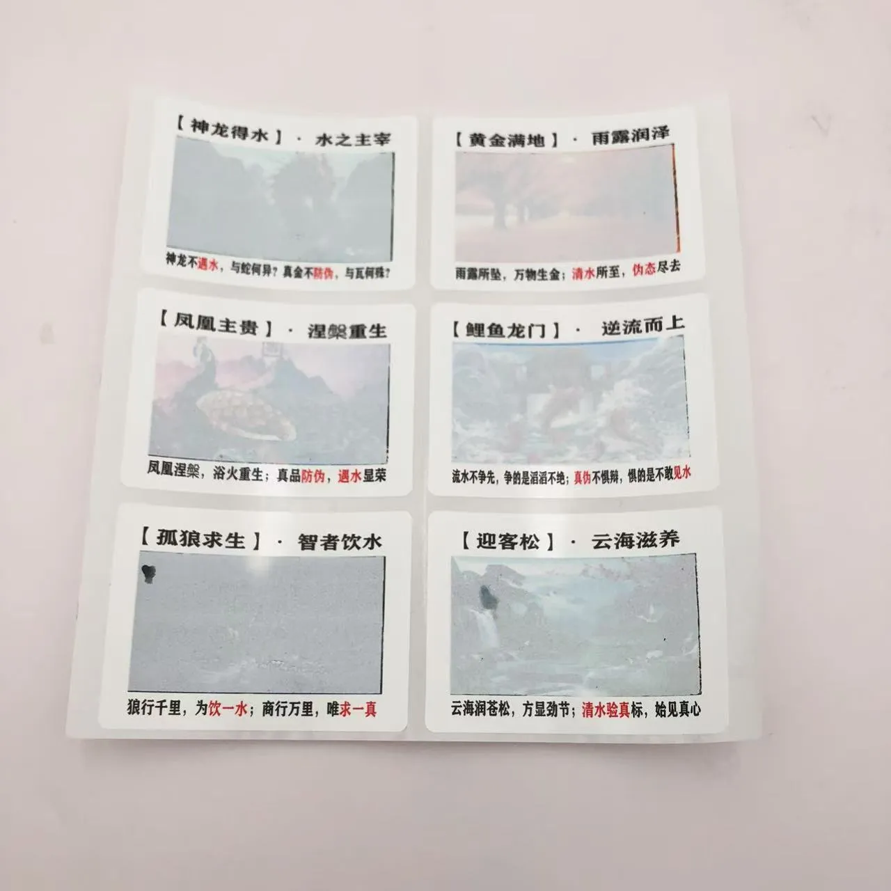 色変化水感応ラベルは、インクと水の間の物理的または化学反応を利用して、隠れたパターンを可視化したり、色の変化を引き起こしたりします。特殊なプロセスと設備で製造されたこれらのラベルは、優れた偽造防止機能を備えています。乾燥すると初期状態に戻り、繰り返し使用できるタイプもあります。