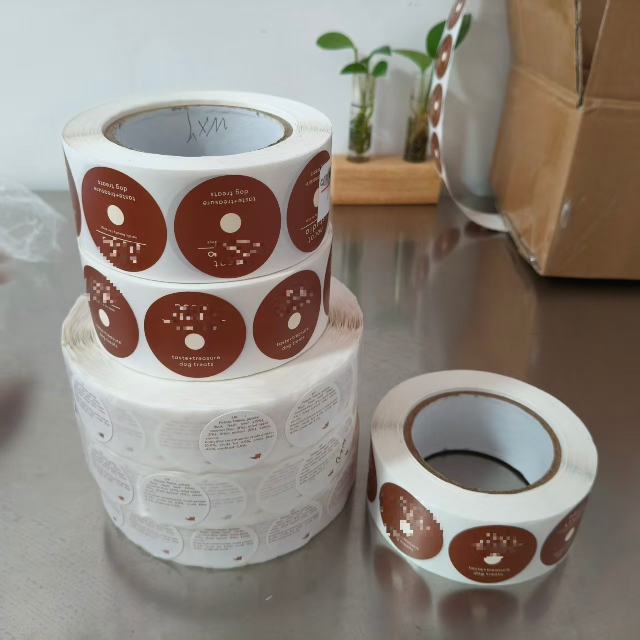 ジョジョパックは、デンマークの顧客向けにカスタムのドッグフード包装ステッカーの製造、検査、梱包を完了し、ステッカーは出荷の準備が整いました。