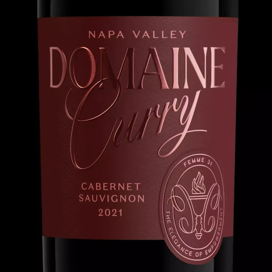 これワインのラベルスプリットデザインを採用。下部には線状の背景テクスチャーを施し、文字、城、上下の枠部分にはアンティーク銅金箔押しを施しております。ライオンヘッドの質感とグラデーションカラーが輝きと立体感を加え、光の下でラベル全体が輝いて見え、消費者の注目を集めます。